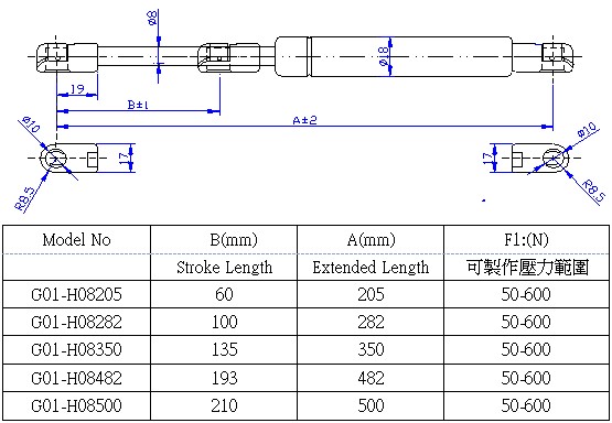 氣壓棒可依照您的需求規格尺寸及壓力來訂製產品.