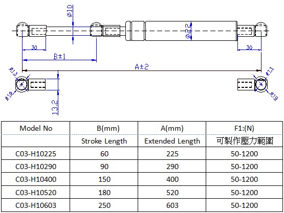 氣壓棒可依照您的需求規格尺寸及壓力來訂製產品. 請您與我們聯繫以取得更詳盡的產品資訊.