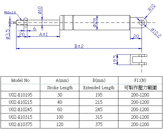 氣壓棒可依照您的需求規格尺寸及壓力來訂製產品.